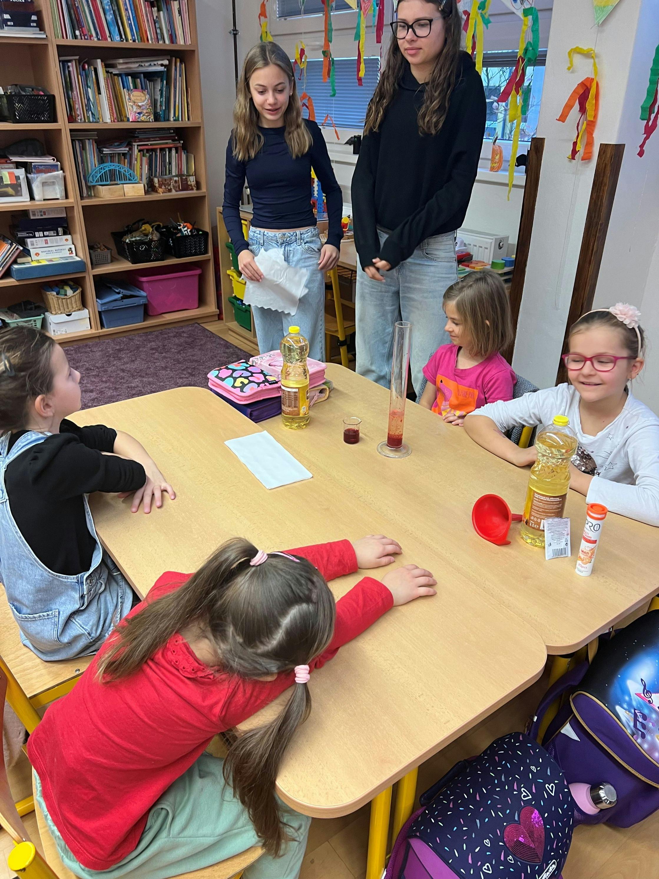 Akce probíhala v přátelské atmosféře – starší „učitelé“ trpělivě vysvětlovali a pomáhali, mladší zase s nadšením objevovali. Společné pokusy propojily ročníky a ukázaly, že učení může být zábava pro malé i velké.